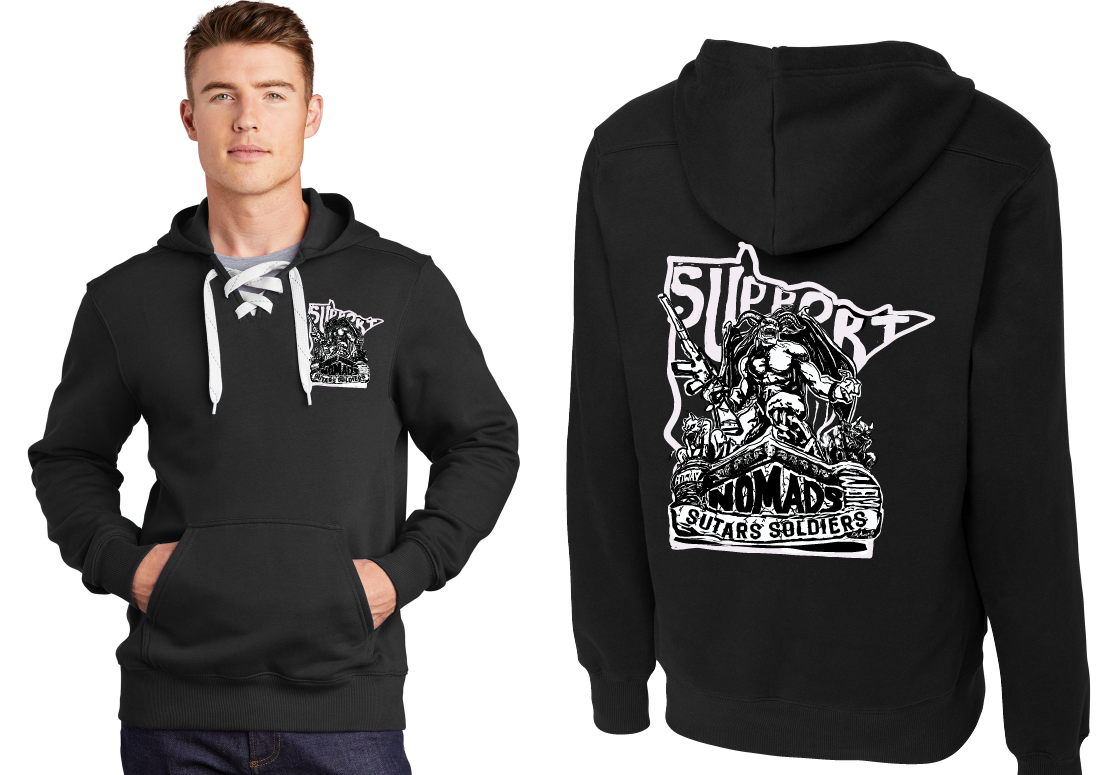 This SWEET hockey Stlye Hoodie comes complete with the strings and all and is a favorite amaong people supporting the Sutar Soldiers M.C.